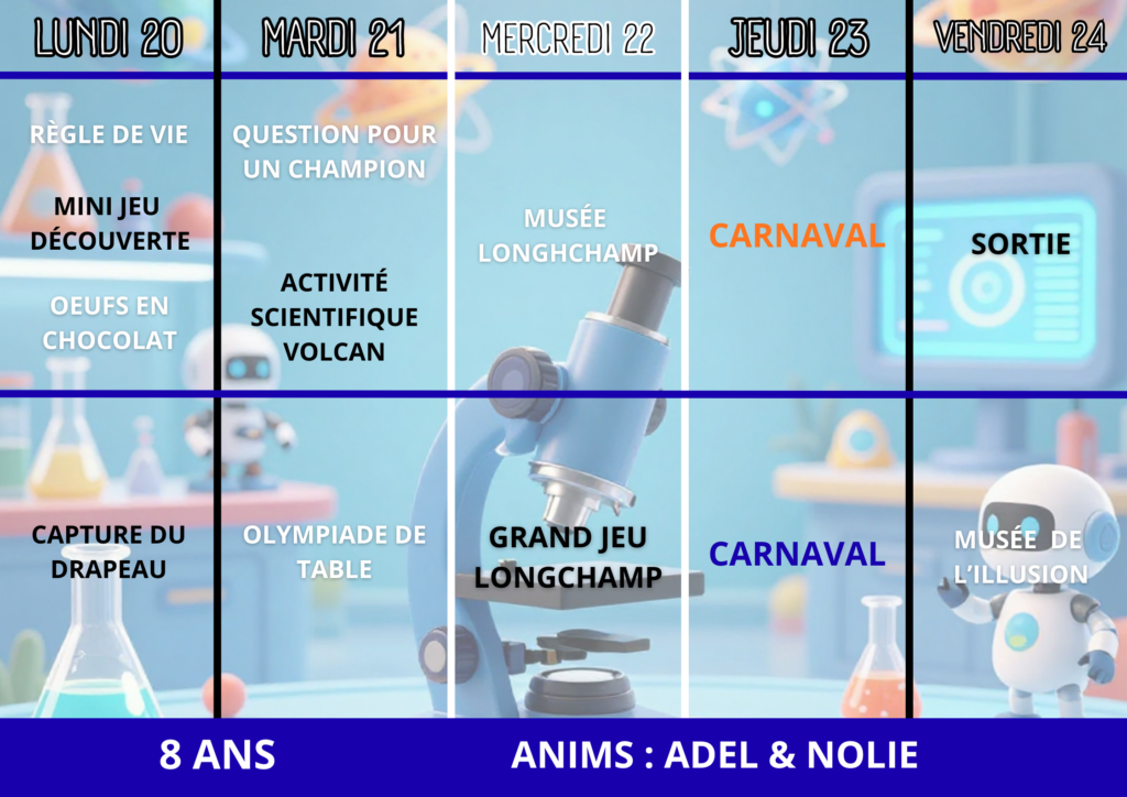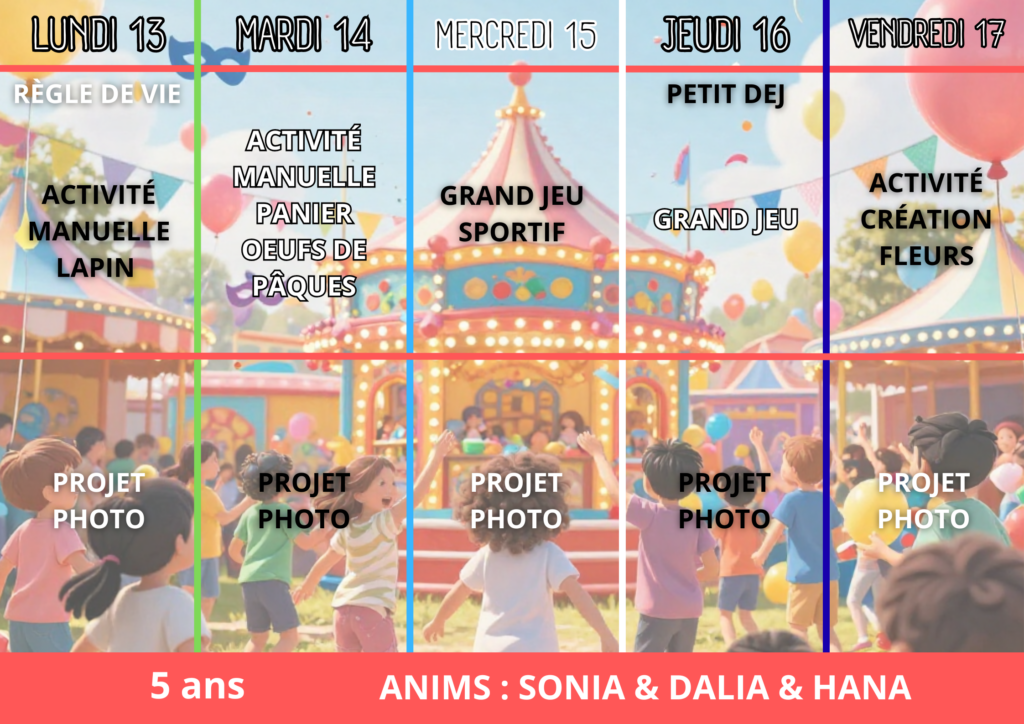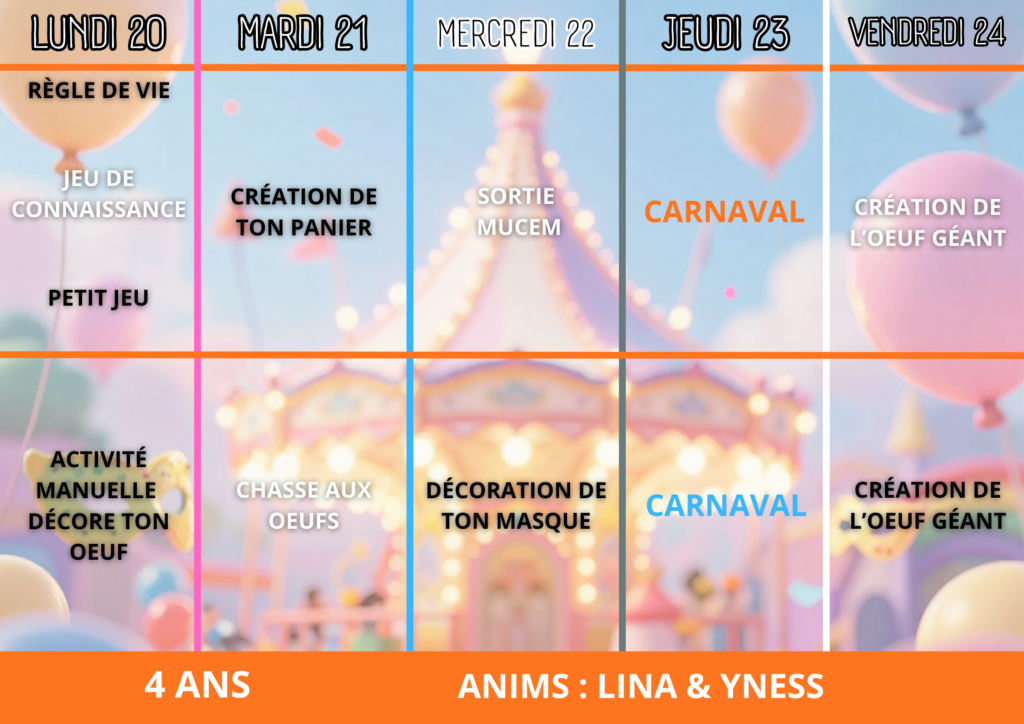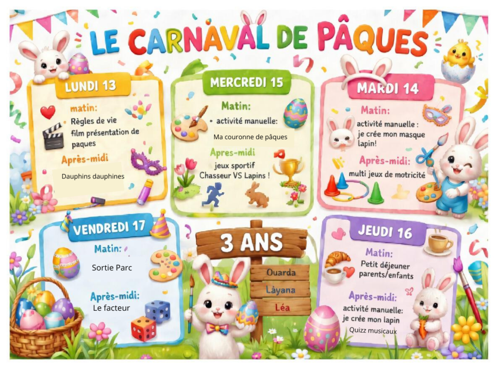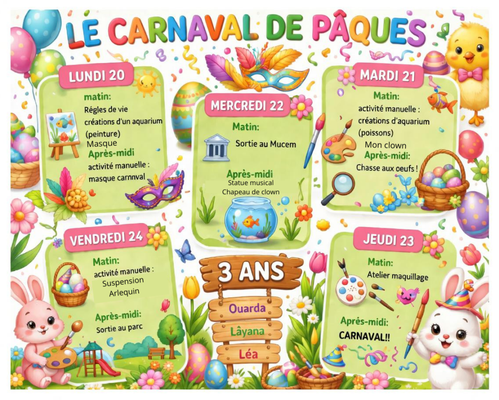 VACANCES D'AVRIL : Lundi 13 Avril 2026